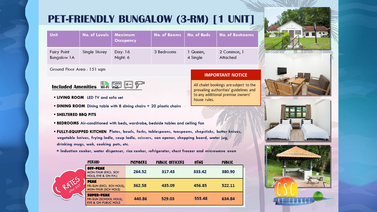 Both Bungalow 2 and 3 offer 4 bedrooms, a living area, dining space, fully-equipped kitchen and sheltered BBQ pits — providing comfort for larger groups, planning to throw a birthday party for their furry companions or a get-together.