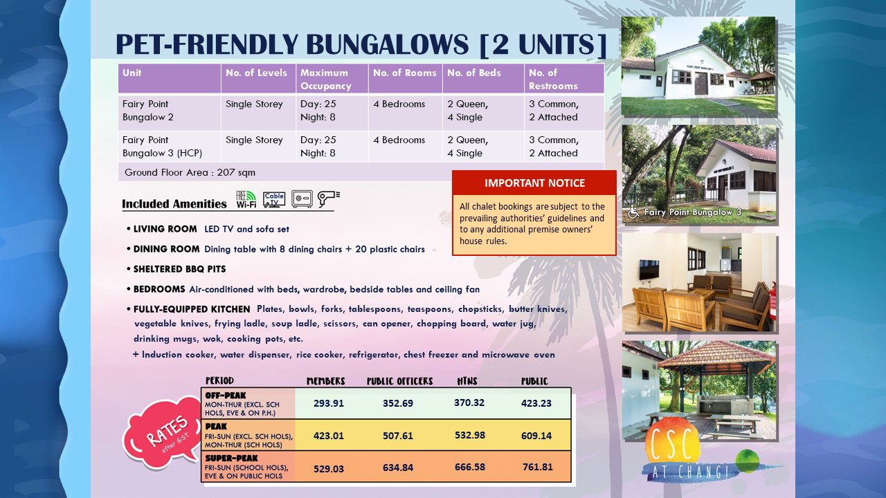 Both Bungalow 2 and 3 offer 4 bedrooms, a living area, dining space, fully-equipped kitchen and sheltered BBQ pits — providing comfort for larger groups, planning to throw a birthday party for their furry companions or a get-together.